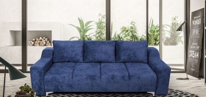 Canapea extensibila moderna, cusaturi ornamentale pe sezut si brat, L 242 cm, brate detasabile, ext. 143 x 192 cm, spatar balama pafta, sezut cu balama arc pentru o mai usoara deschidere, lada...