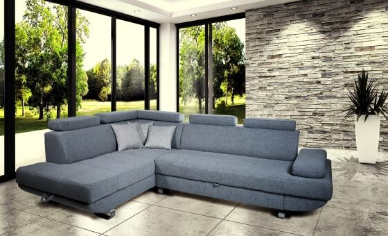 Coltar Madeira, un coltar extensibil cu 3 perinite ornamentale, cu lada, elegant,   potrivit pentru casa si birou, cu picioare de metal de 12 cm inaltime. Coltar Madeira, L 268 X 195 cm, A...